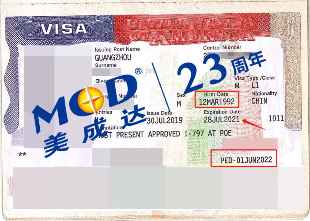 这一位是92年的L1申请人,移民局的批准函的到期日是:2022年6月1日,但是广州领馆批出的签证到期日是2021年7月28日。
